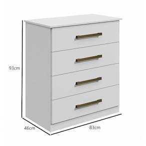 Caracteristicas Acabamento: Pintura Possui Pés: Não Possui Possui Portas: Não Possui Possui Gavetas: 04 Gavetas Escala de Brilho: Fosco Material do Fundo: mdp Material da Gaveta: mdp Material Principal: mdf/mdp Possui Prateleiras: Não Possui Acabamento da Gaveta: Pintura Tipo de Puxador da Porta: Externo Tipo de Puxador da Gaveta: Externo Escala de Brilho da Gaveta: Brilhante Tipo de Corrediça da Gaveta: Metálica Simples Material do Puxador da Porta: Plástico Material do Puxador da Gaveta: Plástico Tipo de Dobradiça/Corrediça da Porta: Metálica Gaveta com Chave: Não Necessita Montagem: Sim Sapatas Niveladoras: Não Sistema de Montagem: Parafusos e Minifix. Suporta até: 25 Kg Peso Máximo por Gaveta: 07 Kg