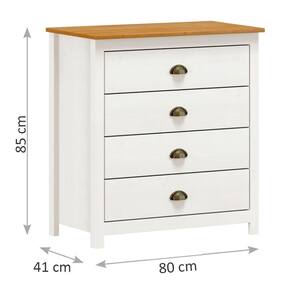 Características: Estrutura em Madeira Maciça de Pinus Pintura Acetinada Verniz PU e UV Corrediças Telescópicas Puxadores Metálicos em Ouro Envelhecido Pés Alongados em Madeira Amplo Espaço para Armazenamento As Gavetas Suportam um Peso Máximo Distribuído de 5Kg