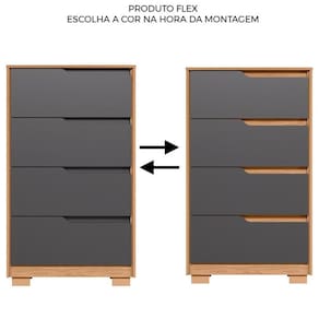 Característica da Cômoda Sara: - Estrutura em MDP; - Acabamento de pintura em UV; - Moldura em 15 mm; - 4 gavetas com corrediças telescópicas; - Puxadores cava; - 4 pés em ABS; - Produto color; - Não acompanha itens de decoração ou quaisquer objetos fora o móvel na imagem; - Imagens interna meramente ilustrativa para ver a divisão do produto; - Montagem por conta do comprador;