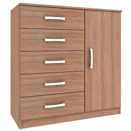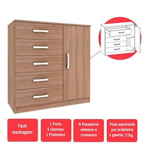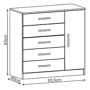 O(a) Cômoda 5 Gavetas 1 Porta Bélgica 20100 Demolição - Pnr Móveis é produzido em MDP.<br>O produto necessita de montagem, chegará na sua casa desmontado, em caixas, acompanhado de todas as peças, ferragens e manuais para montagem, ele é montado com Parafusos, cavilhas e minifix, e a sua montagem possui um grau de dificuldade Médio para ser efetuada.<br>Este móvel é indicado para que seja utilizado em Quarto, dando um toque especial no cômodo de sua casa.<br>Para que você mantenha seu produto sempre em ótimo estado, recomendasse Limpar com pano seco ou levemente umedecido.<br>Lembrando ainda que: Escala de brilho da porta e da gaveta: Super brilho.<br><br><br>DETALHAMENTO:<br><br><br>Estrutura:<br>-------------------------------------------<br>Escala de Brilho: Brilhante<br>Material da Estrutura: MDP<br><br>Instalação:<br>-------------------------------------------<br>Necessita de Montagem: Sim<br>Grau de Dificuldade da Montagem: Médio<br>Como os Móveis Chegarão na Minha Casa: Desmontados, em caixas, acompanhados de todas as peças, ferragens e manuais para montagem<br>Sistema de Montagem: Parafusos, cavilhas e minifix<br><br>Estrutura Interna:<br>-------------------------------------------<br>Quantidade de Portas: 1<br>Quantidade de Prateleiras: 1<br>Peso Suportado nas Prateleiras (kg): 5<br>Peso Suportado nas Gavetas (kg): 5<br>Quantidade de Puxadores: 6<br>Material do Puxador: Plástico<br>Material das Dobradiças: Não Possui<br>Material das Corrediças: Plástico<br>Quantidade de Gavetas: 5<br><br>Outras Informações:<br>-------------------------------------------<br>Revestimento/Acabamento: Laca<br>Garantia (dias): 90<br>Indicação de Uso: Quarto<br>Recomendação de Manutenção: Limpar com pano seco ou levemente umedecido<br>Observação: Escala de brilho da porta e da gaveta: Super brilho<br>Revestimento/Acabamento: Laca<br><br>Cômoda:<br>-------------------------------------------<br>Quantidade de Portas: 1 Porta<br>Quantidade de Gavetas: 5 Gavetas<br>Possui Espelho: Não<br><br>Tamanho/Peso:<br>-------------------------------------------<br>Altura: 93cm<br>Largura: 93cm<br>Profundidade: 40cm<br>Peso: 33kg<br><br>Geral:<br>-------------------------------------------<br>SKU Panorama Móveis: 29999<br>