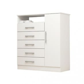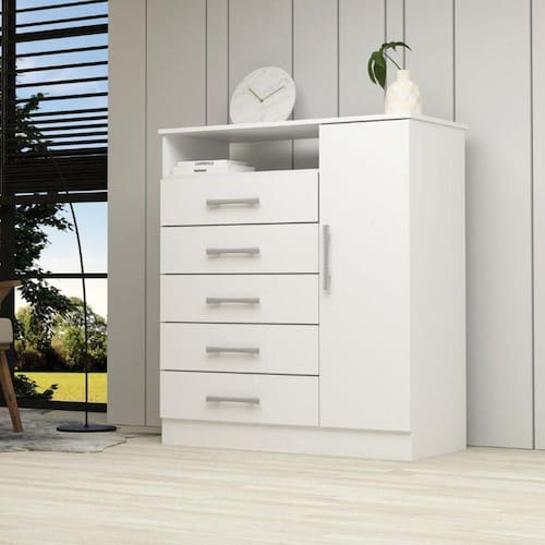 Deixe seu ambiente mais completo com a Cômoda Madri! Equipada com cinco gavetas e uma porta, oferece um espaço excelente para armazenamento de seus pertences.