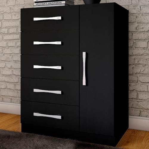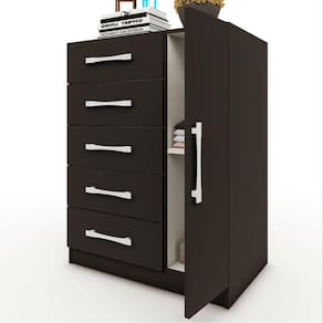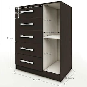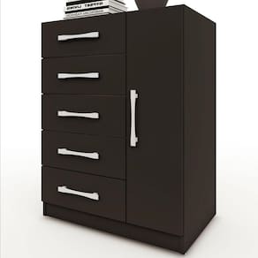 O(a) Cômoda 5 Gavetas 1 Porta Corais Preto Fosco - Pnr Móveis é produzido em MDP na escala de brilho Fosco, e possui um grau de dificuldade de montagem: Médio.
