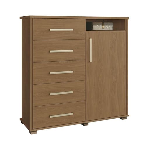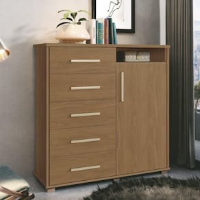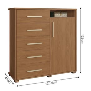 Precisando de um complemento perfeito e espaçoso para arrumar as suas roupas e pertences? Então venha conferir a Cômoda Para Quarto 5 Gavetas 1 Porta 3 Prateleiras Siena F08 Freijó que a Mpozenato trouxe para você!