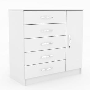 A Cômoda Zurique possui um design atemporal e é confeccionada com materiais de qualidade, possui 5 gavetas e 1 porta para deixar os seus pertences organizados e sempre à mão. Ela irá combinar perfeitamente com uma decoração de seu quarto.