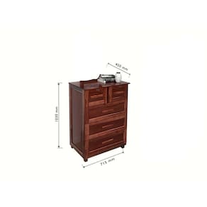 Cômoda Manaus 5 gavetas, possui cinco gavetas, sendo dois gavetões e duas gavetas menores com chave para deixar seus pertences mais seguros. Produzido com madeira pinus (reflorestada) e HDF, corrediças metálicas, dobradiça de pressão, o tampo em MDF de 15 mm, 4 pés de madeira maciça e puxadores de madeira maciça. Excelente produto para compor o seu lar. Produto Montado: Sim Acabamento da Gaveta: Impressão Acabamento dos Pés: Verniz Altura dos Pés: 12 Altura Máxima dos Pés: 12.0000 Ambiente Principal: Quarto codigo_ean: 7909903495100 Complexidade da Montagem: Baixa: pode ser montado por uma pessoa sozinha Cor: Mel Cor do Produto: Mel Escala de Brilho: Brilhante Escala de Brilho da Gaveta: Semi-Brilho Gaveta com Chave: Sim Informações Complementares: Produto de excelente repartimento e acabamento Itens Inclusos: 1 Cômoda, Kit Ferragens e Manual de Montagem. Linha ou Coleção: Manaus Manual de Montagem e Instalação: https://product-hub-prd.madeiramadeira.com.br/879420/documents/c5994bc5-b43e-4cb6-b18b-900e02eb04501110123comodamanaus5g.pdf Material da Gaveta: Madeira/HDF Material do Fundo: Duratree Material do Puxador da Gaveta: Poliestireno/Cromado Material dos Pés: Madeira Maciça Material Principal: Madeira Maciça Necessita Montagem: Sim Origem do Produto: Nacional Peso: 24,6 kg Peso Máximo por Gaveta: 5 kg Possui Espelho: Não Possui Nichos: Não Possui Pés: 04 Possui Portas: Não Possui Prateleiras: Não Possui Rodízio: Não Quantidade de Gavetas: 05 Gavetas Recomendações de Uso, Manutenção e Limpeza: Deve-se tirar a poeira cuidadosamente com um pano seco ou espanador, para que não haja o perigo do pó sob a pressão e movimento do pano arranhar a superfície. Não usar produtos abrasivos e esponjas duras e ásperas. Sapatas Niveladoras: Não Sistema de Montagem: Parafusos Suporta Até (kg): 80 kg Tipo de Corrediça da Gaveta: Metálica Simples Tipo de Madeira Maciça: Pinus Tipo de Madeira Maciça dos Pés: Pinus Tipo de Puxador da Gaveta: Externo Ean: 7909903495100