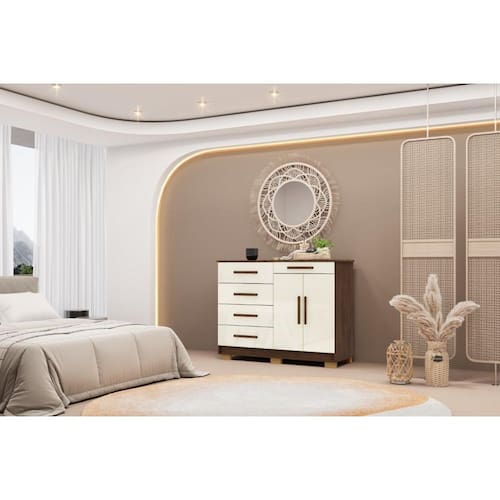A Cômoda Sirius é ideal para quem busca funcionalidade e um design moderno. Seu tampo espaçoso permite organizar itens de forma prática, mantendo tudo ao alcance. Com 5 gavetas espaçosas, sendo uma delas especial para acessórios, todas com corrediças metálicas que garantem resistência e uma abertura suave. As duas portas laterais possuem uma prateleira interna ajustável, que pode ser removida conforme a necessidade, sendo um excelente espaço para sapatos ou outros objetos. Os puxadores em MDF revestido adicionam um toque de elegância. Os pés retangulares modernos elevam o móvel, protegendo da umidade, A Cômoda Sirius está disponível em cores modernas que complementam qualquer estilo de ambiente. Tudo isso para valorizar o seu lar e proporcionar uma excelente experiência de quarto!