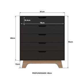 Cor: Preto | Quantidade de Gavetas: 5 | Altura: 95 | Produto: Cômoda 5 Gavetas Alice | Portátil: Não | Largura: 81 | Tamanho: 95x81x40 | do modelo: 1 | Peso do Produto: 42,70 | Tonalidade: Preto