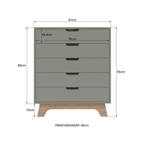 Cor: Verde | Quantidade de Gavetas: 5 | Altura: 95 | Produto: Cômoda 5 Gavetas Alice | Portátil: Não | Largura: 81 | Tamanho: 95x81x40 | do modelo: 1 | Peso do Produto: 42,70 | Tonalidade: Verde