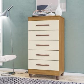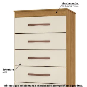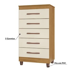 Com a Cômoda Esmeralda é linda, de grade presença para o ambiente. Com 5 gavetas para você guardar todas as roupas dobradas e organizadas. Produzido em estrutura MDP 12 mm e 15mm com acabamento em Pintura UV texturizada. Fica perfeito para ambientes compactos e menores. Puxadores com acabamento metalizado bronze e 4 pés de PVC. Produto Montado: Sim Acabamento da Gaveta: Pintura UV Ambiente Principal: Quarto codigo_ean: 7908141213002 Complexidade da Montagem: Alta: deve ser montado por um montador especializado Cor: Carvalho Grife/Off White Cor do Produto: Carvalho Grife/Off White Escala de Brilho: Fosco Gaveta com Chave: Não Itens Inclusos: 1 cômoda, ferragens e manual de montagem Manual de Montagem e Instalação: https://product-hub-prd.madeiramadeira.com.br/847035/documents/9b45eada-105f-469e-a1b6-9344b5b4f039307410standardresolution70.jpg Material da Gaveta: MDP Material do Fundo: MDP Material do Puxador da Gaveta: Plástico Material Principal: MDP Necessita Montagem: Sim Origem do Produto: Nacional Peso: 23,9 kg Peso Máximo por Gaveta: 0 kg Possui Espelho: Não Possui Nichos: Não Possui Pés: Não Possui Portas: Não Possui Prateleiras: Não Quantidade de Gavetas: 05 Gavetas Recomendações de Uso, Manutenção e Limpeza: Na limpeza não utilizar produtos químicos e abrasivos, usar apenas um pano umedecido, para garantir a maior durabilidade do móvel. Sapatas Niveladoras: Não Sistema de Montagem: Parafusos Suporta Até (kg): 25 kg Tipo de Corrediça da Gaveta: Metálica Simples Tipo de Puxador da Gaveta: Externo