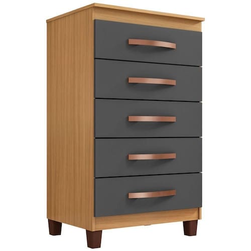 05 gavetas com corrediças metálicas, 05 pares de corrediças;