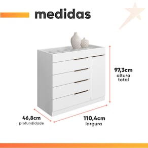ITENS INCLUSOS: 1 Cômoda, 1 Manual de montagem, 1 Kit Parafusos