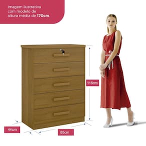 Essa linda cômoda , com acabamento em MDF e pintura UV, era o que faltava para completar seu dormitório. Composta por 05 ( cinco ) gavetas super amplas e 01 ( uma) com chave , você poderá organizar todos seus pertences, e ainda ter a segurança de uma gaveta mestre com fechadura. Ela é o complemento perfeito para o seu quarto, com uma variedade de cores que atende a qualquer decoração. Não perca tempo e garanta já a sua. Produto Montado: Sim Acabamento da Gaveta: Pintura UV Ambiente Principal: Quarto codigo_ean: 7909903441695 Complexidade da Montagem: Baixa: pode ser montado por uma pessoa sozinha Cor: Cinamomo Cor do Produto: Cinamomo Escala de Brilho: Fosco Gaveta com Chave: Sim Itens Inclusos: 1 Cômoda, Kit Ferragens e Manual de Montagem Manual de Montagem e Instalação: https://product-hub-prd.madeiramadeira.com.br/872847/documents/848e386c-d53d-4015-9deb-5bc28bccda181557362comodaipanema.pdf Material da Gaveta: MDP Material do Fundo: MDF Material Principal: MDP Necessita Montagem: Sim Origem do Produto: Nacional Peso: 45 kg Peso Máximo por Gaveta: 5 kg Possui Espelho: Não Possui Nichos: Não Possui Pés: Não Possui Portas: Não Possui Prateleiras: Não Quantidade de Gavetas: 05 Gavetas Recomendações de Uso, Manutenção e Limpeza: Pano levemente umedecido e depois passar um pano seco. Não utilizar produtos de limpeza abrasivos, nem esponjas de aço. Sapatas Niveladoras: Não Sistema de Montagem: Parafusos, Cavilhas Suporta Até (kg): 30 kg Tipo de Corrediça da Gaveta: Metálica Telescópica Tipo de Puxador da Gaveta: Externo Ean: 7909903441695