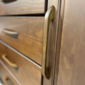 A Cômoda 5 Gavetas e 1 Porta Ouro - Café é aliada á padrões de elegância e resistência, transmitindo o mais bonito e sofisticado que a linha Ouro tem! Sendo confeccionada 100% em madeira maciça, ela garante a longa vida útil da peça!
