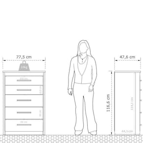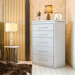 A Cômodas Batrol são ideais para quem tem espaço mais restrito e precisa de um local para guardar e organizar objetos. Na maioria das vezes, as cômodas ainda podem substituir ou complementar móveis maiores, como guarda-roupas ou armários, abrindo espaço físico e visual no ambiente. Produto Montado: Sim Acabamento da Gaveta: Pintura Ambiente Principal: Quarto codigo_ean: 7909903256459 Complexidade da Montagem: Média: pode ser montado por mais de uma pessoa e/ou necessite de maior conhecimento para montagem Cor: Branco Cor do Produto: Branco Cor Flex: Não Cor Interna: Branco Escala de Brilho: Semi-Brilho Escala de Brilho da Gaveta: Fosco Gaveta com Chave: Não Itens Inclusos: 1 Cômoda, Kit Ferragens e Manual de Montagem Linha ou Coleção: Elegance Manual de Montagem e Instalação: https://product-hub-prd.madeiramadeira.com.br/821876/documents/b57dc984-2fba-4088-a5cd-b94f0087f0e0reviso01corrediatelescpica.pdf Material da Gaveta: MDP Material do Fundo: HDF Material do Puxador da Gaveta: MDF Material Principal: MDP Montagem Flex: Não Necessita Montagem: Sim Origem do Produto: Nacional Peso: 48,4 kg Peso Máximo por Gaveta: 5 kg Possui Espelho: Não Possui Nichos: Não Possui Pés: Não Possui Portas: Não Possui Prateleiras: Não Recomendações de Uso, Manutenção e Limpeza: Pano úmido Sapatas Niveladoras: Não Sistema de Montagem: Cavilhas Suporta Até (kg): 25 kg Tipo de Corrediça da Gaveta: Metálica Telescópica Tipo de Puxador da Gaveta: Externo