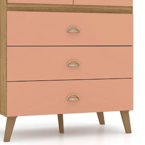 A cômoda 5 gavetas Ziza conta com um design diferenciado que remete ao estilo retrô, expressos nos pés angulados e nos puxadores concha na cor ouro fosco. Além disso, a combinação de tonalidades sóbrias contribui para a fácil harmonização com outros estilos decorativos e ambientes. Já imaginou que prático a cômoda para quarto ser aproveitada como aparador no corredor ou hall de entrada?! Ou ainda, que tal explorar ainda mais e transformá-la em um gaveteiro para escritório? Demais, não é mesmo! As possibilidades são inúmeras, basta usar a criatividade e otimizar a funcionalidade dessa cômoda retrô como você quiser!