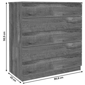 Produzida inteiramente em MDF, possui 5 gavetas com corrediças metálicas, tampo de 25mm e espaço sapateira.