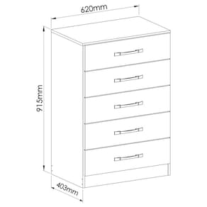 Características: 5 Gavetas com corrediças metálicas Acabamento em pintura U.V Estrutura de MDP 15mm e fundos MDF 3mm Possui puxadores