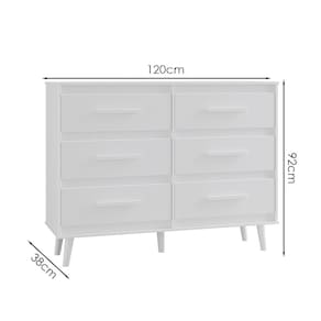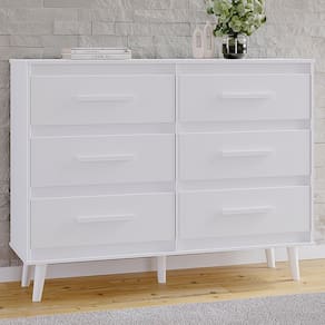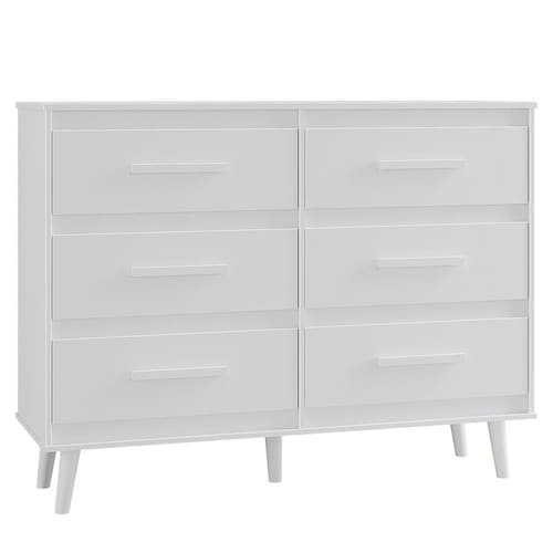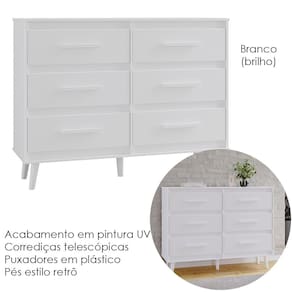 Cômoda Mila, ideal para compor quartos com modernidade e elegância. Produzida em MDP (12/15mm) com acabamento em pintura UV. Conta com 06 gavetas com corrediças telescópicas, puxadores em plástico e pés estilo retrô. Este produto será entregue em 01 volume.
