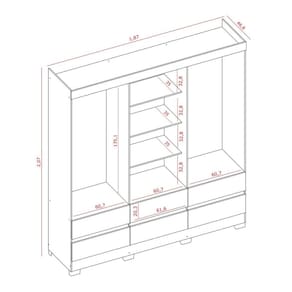 Características Técnicas Estrutura: MDF Dobradiça de 35mm Puxadores com haste um alumínio ponta em PS Preto Corrediças telescópicas para abertura total das gavetas