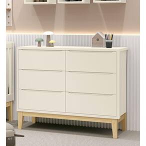 A Cômoda 6 gavetas Classic New - MóveisAqui, é perfeita para o quartinho do seu baby, possui pés em madeira maciça que contribuem para o estilo retrô, possui um desing clean que combina com vários estilos de decoração. Contempla amplas seis gavetas, duas contendo divisórias, para uma maravilhosa organização das roupinhas e itens do seu bebê, possibilita um espaço para armazenamento, de modo que a organização do dia-a-dia possa ser mais fácil. Possui puxadores embutidos, onde as aberturas ocorrem através de recortes no MDF que possibilitam o perfeito encaixe da mão para que possa abrir as portas e gavetas.