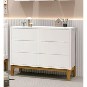 A Cômoda 6 gavetas Classic New - RELLER, é perfeita para o quartinho do seu baby, possui pés em madeira maciça que contribuem para o estilo retrô, possui um desing clean que combina com vários estilos de decoração. Contempla amplas seis gavetas, duas contendo divisórias, para uma maravilhosa organização das roupinhas e itens do seu bebê, possibilita um espaço para armazenamento, de modo que a organização do dia-a-dia possa ser mais fácil. Possui puxadores embutidos, onde as aberturas ocorrem através de recortes no MDF que possibilitam o perfeito encaixe da mão para que possa abrir as portas e gavetas.