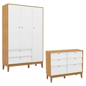 Cômoda 6 Gavetas e Guarda Roupa Unique 3 Portas Freijó Branco Soft Eco Wood - Matic
