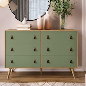 Um charme só. Produto Montado: Sim Acabamento da Gaveta: BP Acabamento dos Pés: Verniz Altura dos Pés: 30 cm Altura Máxima dos Pés: 30.0000 Ambiente Principal: Quarto codigo_ean: 7908308768772 Complexidade da Montagem: Média: pode ser montado por mais de uma pessoa e/ou necessite de maior conhecimento para montagem Cor: Alecrim Cor do Produto: Alecrim Cor Interna: Branco Escala de Brilho: Fosco Escala de Brilho da Gaveta: Fosco Gaveta com Chave: Não Itens Inclusos: 1 Cômoda, Kit Ferragens e Manual de Montagem Manual de Montagem e Instalação: https://product-hub-prd.madeiramadeira.com.br/838135/documents/f86d9398-4874-4204-a12b-17708517ca148175193003.pdf Material da Gaveta: MDF/MDP Material do Fundo: MDP Material do Puxador da Gaveta: Couro Material dos Pés: Madeira Maciça Material Principal: MDF/MDP Necessita Montagem: Sim Origem do Produto: Nacional Pés Reguláveis: Não Peso: 44,7 kg Peso Máximo por Gaveta: 5 kg Possui Espelho: Não Possui Nichos: Não Possui Pés: 05 Possui Portas: Não Possui Prateleiras: Não Possui Rodízio: Não Quantidade de Gavetas: 06 Gavetas Recomendações de Uso, Manutenção e Limpeza: Limpar com pano seco Sapatas Niveladoras: Não Sistema de Montagem: Parafusos e Cavilhas Suporta Até (kg): 30 kg Tipo de Corrediça da Gaveta: Metálica Simples Tipo de Madeira Maciça dos Pés: Eucalipto Tipo de Puxador da Gaveta: Externo