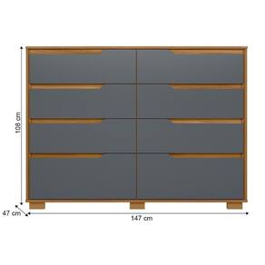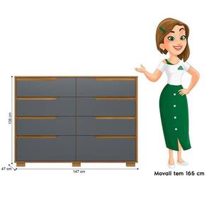 A Cômoda Georgia é um móvel espaçoso e funcional, oferecendo ampla capacidade de armazenamento. Possui um total de oito gavetas, As corrediças telescópicas permitem um deslizamento suave e fácil das gavetas, proporcionando acesso conveniente e organização eficiente do conteúdo armazenado. Esta configuração é ideal para quem precisa de uma solução de armazenamento versátil e diversificada, permitindo a organização de uma variedade de itens, desde roupas a acessórios, de maneira prática e acessível.