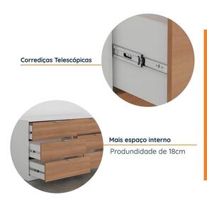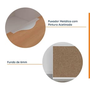 Informações Complementares: Puxador Metálico Acetinado, Frentes em chapa de 18mm com corrediças telescópicas, fundos em 6mm e sistema anti-tombamento.