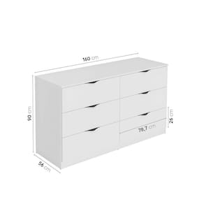 A cômoda 6 Gavetas Hera da CabeCasa MadeiraMadeira é a peça perfeita para quem busca funcionalidade e estilo em um móvel de alta qualidade. Com um design moderno e elegante, esta cômoda oferece 6 gavetas espaçosas, ideais para organizar suas roupas, acessórios e objetos pessoais de forma prática e organizada. As gavetas possuem trilhos telescópicos que garantem um deslizamento suave e silencioso, enquanto os puxadores metálicos adicionam um toque de sofisticação ao móvel. Feita com materiais de alta resistência, como MDP e MDF, e com acabamento em Finish Foil que protege contra riscos e manchas, a cômoda Hera é sinônimo de durabilidade. Parte da coleção Hera, que inclui outros móveis de quarto que se complementam, como guarda-roupa, escrivaninha e mesas de cabeceira, a cômoda Hera é a escolha ideal para quem valoriza a praticidade, beleza e durabilidade em um só produto. Adicione um toque de elegância e organização ao seu ambiente com a cômoda 6 Gavetas Hera da CabeCasa MadeiraMadeira.