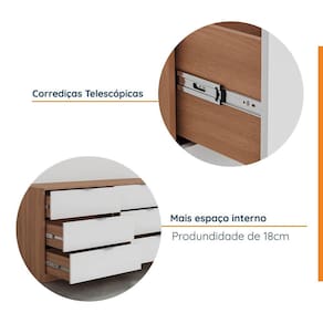 A cômoda Hera é uma peça de mobiliário elegante e funcional que combina design moderno e qualidade. Com 6 gavetas espaçosas, ela oferece muito espaço para guardar suas roupas, acessórios e objetos pessoais. As gavetas possuem trilhos telescópicos que garantem um deslizamento suave e silencioso, além de puxadores metálicos que dão um toque de sofisticação. A cômoda Hera é feita de MDP e MDF, com acabamento em Finish Foil e Pintura UV que protege contra riscos e manchas. Ela faz parte da coleção Hera, que conta com outros móveis de quarto que combinam entre si, como guarda-roupa, escrivaninha e mesas de cabeceira. A cômoda Hera é a escolha ideal para quem busca praticidade, beleza e durabilidade em um só produto. Produto Montado: Sim Acabamento da Gaveta: Pintura UV Acabamento dos Pés: Finish Foil Altura dos Pés: 8 cm Ambiente Principal: Quarto codigo_ean: 7909903363447 Complexidade da Montagem: Média: pode ser montado por mais de uma pessoa e/ou necessite de maior conhecimento para montagem Cor: Louro/Branco Geada Cor do Produto: Louro/Branco Geada Cor Interna: Louro Escala de Brilho: Semi-Fosco Escala de Brilho da Gaveta: Semi-Fosco Gaveta com Chave: Não Informações Complementares: Puxador Metálico Acetinado, Frentes em chapa de 18mm com corrediças telescópicas, fundos em 6mm e sistema anti-tombamento. Itens Inclusos: Cômoda, kit de ferragens e manual de montagem Linha ou Coleção: Hera Manual de Montagem e Instalação: https://product-hub-prd.madeiramadeira.com.br/861014/documents/21ef572a-b4d6-4cd6-98b3-5e157edcedd3manualdemontagemcomodahera.pdf Material da Gaveta: MDP Material do Fundo: MDF Material do Puxador da Gaveta: Metal Material dos Pés: MDP Material Principal: MDP Necessita Montagem: Sim Origem do Produto: Nacional Pés Reguláveis: Não Peso: 90,2 kg Peso Máximo por Gaveta: 8 kg Possui Espelho: Não Possui Nichos: Não Possui Pés: Rodapé Possui Portas: Não Possui Prateleiras: Não Possui Rodízio: Não Quantidade de Gavetas: 06 Gavetas Recomendações de Uso, Manutenção e Limpeza: Deve ser realizada com pano limpo e seco. Sapatas Niveladoras: Não Sistema de Montagem: Parafusos, Cavilhas e Minifix Suporta Até (kg): 50 kg Tipo de Corrediça da Gaveta: Metálica Telescópica Tipo de Puxador da Gaveta: Externo Ean: 7909903363447