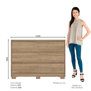 FICHA TÉCNICA: Acabamento: Na versão Castanho HP é pintura UV texturizada, na versão Jequitibá Brilho é pintura UV e na versão Nature/Off White é pintura UV texturizada e Pintura UV Cor Interna: Trama Escala de Brilho: Na versão Castanho é pintura fosco, na versão Jequitibá é pintura brilho e na versão Nature/Off White é pintura fosco/brilho Material do Fundo: MDF Possui Ganchos: Não Possui Iluminação Led: Não Possui porta Objetos: Não Qtd. Portas: Não possui Qtd. Gavetas: 6 Und. Material da Gaveta: MDP Material da Corrediça: Telescópica Peso Máximo por Gaveta: 3 KGs Possui Organizador de Gaveta: Não Qtd. Prateleiras: Não possui Possui pés: 6 Und. Material dos Pés: ABS Altura Pés/Rodapés: 5 Cm Pés Regulavés: Não Possui Espelho: Não Possui Vidro: Não Produto Suporte até -Kg-: 26 Kg Material Principal: MDP Medidas Montado: 93 x 129,5 x 48 Cm Peso Montado: 42 Kg Possui Rodízios: Não Tampo Basculante: Não Possui Nichos: Não