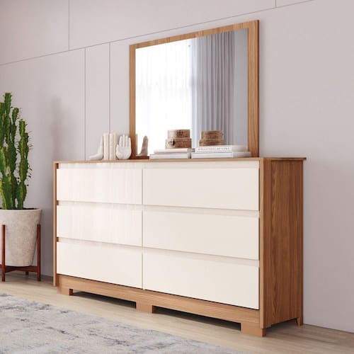 Cômoda 6 Gavetas Layla Com Espelho Casa 812 Nature Com Off White A comoda Layla e a escolha perfeita para quem busca uma peca de mobiliario elegante e funcional. Com seus seis espacosos compartimentos, ela oferece amplo espaco de armazenamento para roupas, acessorios e objetos pessoais. Alem disso, as corredicas telescopicas garantem que as gavetas deslizem suavemente, sem fazer ruidos ou emperrar. Os pes em ABS proporcionam estabilidade e seguranca, alem de adicionar um toque de sofisticacao a peca. Seja no quarto, na sala ou em qualquer outro ambiente da casa, a comoda Layla e um investimento duradouro, que alia beleza e praticidade. CARACTERISTICAS GERAIS: Estilo: Moderno Linha: Layla Ambiente Principal: Quarto Marca: Casa 812 Origem: Nacional Garantia do Fornecedor: 3 Meses Itens Inclusos: 1 Comoda e Instrucao de Montagem