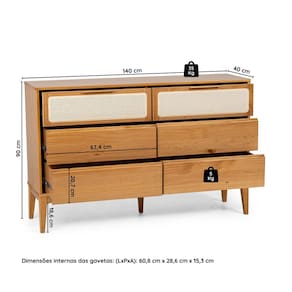 A Cômoda Viena da Artemobili possui 6 gavetas com corrediças telescópicas, permitindo abertura total e facilitando o uso, perfeita para manter tudo organizado.