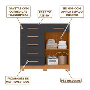 Tampo Amplo e Resistente: Suporta até 50 polegadas, permitindo que a cômoda seja utilizada também como suporte para TV, agregando funcionalidade ao móvel.