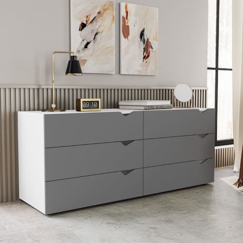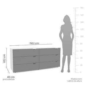 Cômoda 6 Gavetas Porto Branco Cinza Politorno Móveis - Branco | Cinza