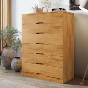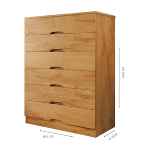O acabamento em verniz UV com escala de brilho semi-brilho proporciona um visual elegante e uma proteção adicional, mantendo a beleza do móvel por mais tempo. Com um design atemporal e puxadores embutidos tipo cava, a cômoda adapta-se facilmente a diferentes estilos de decoração. Com 6 gavetas espaçosas, cada uma equipada com corrediças telescópicas para um deslizar suave e sem esforço, você terá amplo espaço para organizar suas roupas e acessórios.