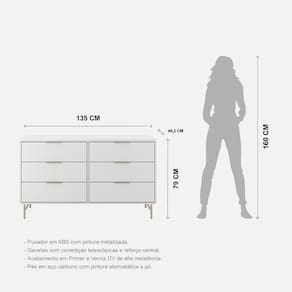 Cômoda Yves com 6 Gavetas Sofisticação, Espaço e Funcionalidade para seu Quarto