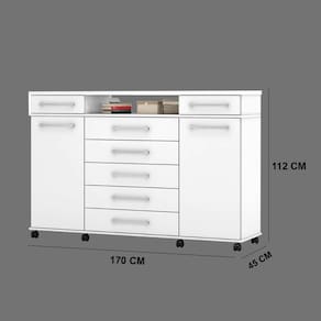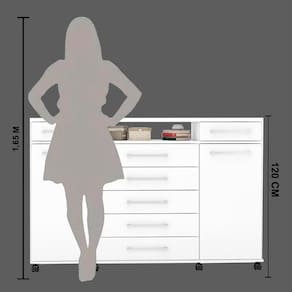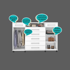 Cômoda 7 Gavetas 2 Portas 1 Cabideiro 1 Nicho com Rodizios Mônaco - Branco