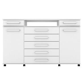 Comoda 7 Gavetas 2 Portas com Rodizios London Demobile que oferece capacidade extrema de utilidade e organizacao devido ao grande numero de gavetas e compartimento com portas, sendo para sapatos e com bastao para cabides. Tampo reforcado de 25mm para tvs de maior dimensao e rodizios para a movimentacao facilitada do movel no ambiente