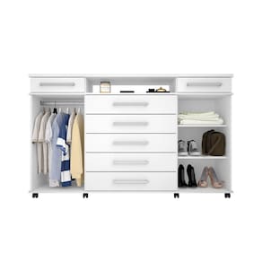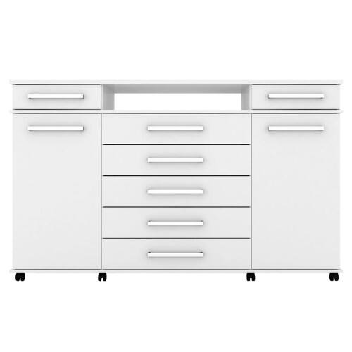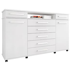 A cômoda London proporciona beleza e organização ao ambiente. Contém 7 gavetas, 2 portas, prateleiras, cabideiro e tampo reforçado para suportar televisores de até 50 polegadas. Confeccionada em MDP de alto padrão, acabamento com pintura UV e corrediças metálicas nas gavetas completam seu alto desempenho.