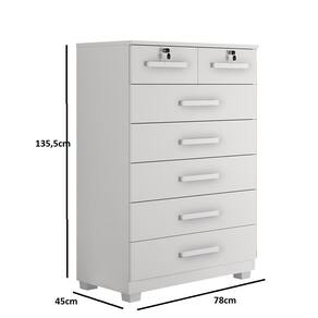 A Cômoda Barcelona com seu lindo design trás charme e elegância a qualquer espaço, produzido toda em chapa de 15 mm que garante uma boa durabilidade do produto, além de possuir 7 gavetas, sendo 2 gavetas com chave ainda contam com corrediça telescópica que proporciona uma maior suavidade em seu uso diário, acomoda muita roupa e seus acessórios tudo muito bem-organizado.