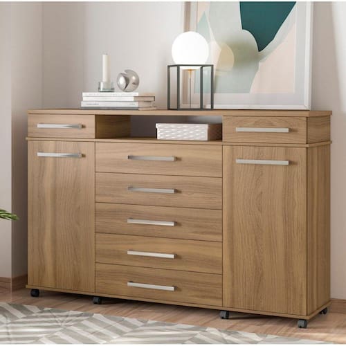 Essa cômoda é perfeita para quem procura um móvel robusto e com capacidade extrema de utilidade e organização, devido ao grande número de gavetas e compartimentos