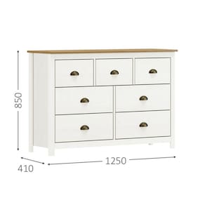A Cômoda 7 Gavetas Topázio em Madeira Pinus, combina estilo e funcionalidade. Com acabamento elegante em branco e freijó, oferece amplo espaço para organizar roupas e acessórios. Seu design moderno e resistente é perfeito para qualquer ambiente, trazendo sofisticação e praticidade para o seu espaço. Ideal para quem busca qualidade e organização.