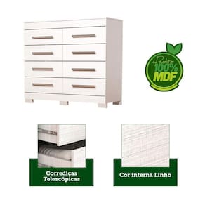 Cômoda 8 Gavetas 100% MDF Lantana Espresso Móveis Branco