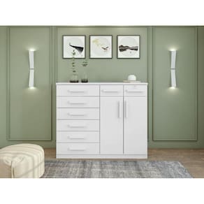 Olha só que linda a Cômoda Toronto. Agora sim, seu quarto estará completo e suas vestes e pertences bem organizados. Com 8 gavetas e 2 Portas você poderá organizar tudo o que for necessário. Ela é o complemento perfeito para o seu quarto. As cores combinam com qualquer decoração e ainda deixam o ambiente suave e sofisticado. Linda, né?