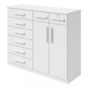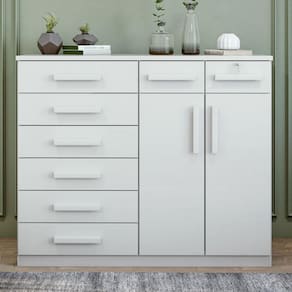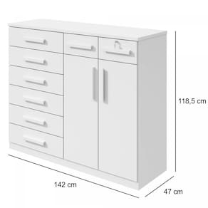 Olha só que linda a Cômoda Toronto! Agora sim, seu quarto estará completo e suas vestes e pertences bem organizados. Com 8 gavetas e 2 Portas você poderá organizar tudo o que for necessário. Ela é o complemento perfeito para o seu quarto! As cores combinam com qualquer decoração e ainda deixam o ambiente suave e sofisticado. Linda, né? Acabamento: Pintura Acabamento da Gaveta: Pintura Acabamento da Porta: Pintura Acabamento da Prateleira: Pintura Altura: 118,5 cm Ambiente Principal: Quarto calculo: unidade Complexidade da Montagem: Média: pode ser montado por mais de uma pessoa e/ou necessite de maior conhecimento para montagem Cr: Branco Cr do Produto: Branco Escala de Brilho: Brilhante Escala de Brilho da Gaveta: Fosco Escala de Brilho da Porta: Fosco Escala de Brilho da Prateleira: Fosco Estilo: Clássico Gaveta com Chave: Sim Itens Inclusos: 1 Cômoda, Kit Ferragens e Manual de montagem. Largura: 142 cm Manual de Montagem e Instalação: https://cdn2.madeiramadeira.com.br/atributo/m-veis-lopas/748068-29682-a3-prospecto-c-moda-toronto-2017.pdf Material da Gaveta: MDP Material da Porta: MDP Material da Prateleira: MDP Material do Fundo: HDF 2,5mm Material do Puxador da Gaveta: Plástico Material Principal: MDF/MDP Necessita Montagem: Sim Origem do Produto: Nacional Peso: 74 kg Peso Máximo por Gaveta: 5 kg Peso Máximo por Prateleira: 5 kg Possui Espelho: Não Possui Gavetas: 08 Possui Nichos: Não Possui Pés: Não Possui Portas: 02 Possui Prateleiras: 02 Profundidade: 47 cm Recomendações de Uso, Manutenção e Limpeza: Limpar somente com pano macio e seco, não colocar diretamente em incidência da luz solar, não colocar em lugar úmido. Sapatas Niveladoras: Não Sistema de Montagem: Parafusos e Minifix. status-cadastro: Aprovado Suporta Até (kg): 81 kg Tipo de Corrediça da Gaveta: Metálica Telescópica Tipo de Dobradiça/Corrediça da Porta: Metálica Tipo de Porta: Bater Tipo de Puxador da Gaveta: Externo Tipo de Puxador da Porta: Externo