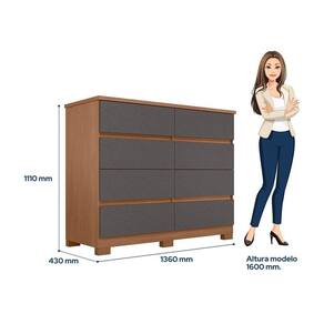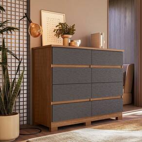 A Cômoda Roma 8 gavetas da Santos Andirá é um móvel perfeito para quem procura otimizar o seu espaço, guardando tudo que precisa. São 8 gavetas com corrediças telescópicas que acomodam muita roupa dobrada e organizada. O tampo é em 25 mm, que suporta até 20 kg. O acabamento é em pintura UV semi fosca, proporcionando ainda mais beleza ao móvel. Tudo fabricado com muita qualidade e respeitando as normas de sustentabilidade, sem prejudicar o meio ambiente. Produto Montado: Sim Acabamento da Gaveta: Pintura UV Acabamento dos Pés: Poliéster Altura dos Pés: 5 cm Altura Máxima dos Pés: 5.0000 Ambiente Principal: Quarto codigo_ean: 7900288350688 Complexidade da Montagem: Média: pode ser montado por mais de uma pessoa e/ou necessite de maior conhecimento para montagem Cor: Jatobá/Grafite Cor do Produto: Jatobá/Grafite Cor Interna: Jatobá Escala de Brilho: Semi-Fosco Escala de Brilho da Gaveta: Semi-Fosco Gaveta com Chave: Não Itens Inclusos: 1 Cômoda, Manual de Montagem e Kit Ferragem Linha ou Coleção: Roma Manual de Montagem e Instalação: https://product-hub-prd.madeiramadeira.com.br/370451319/documents/38e04d6a-24e4-4022-bf89-59b0cb10f623bc7c353b82d3dcf51772826963.pdf Marca: Santos Andirá Material da Gaveta: MDP Material do Fundo: HDF Material dos Pés: PVC Material Principal: MDP Necessita Montagem: Sim Origem do Produto: Nacional Pés Reguláveis: Não Peso: 58,05 kg Peso Máximo por Gaveta: 3 kg Possui Espelho: Não Possui Nichos: Não Possui Pés: 06 Possui Portas: Não Possui Prateleiras: Não Possui Rodízio: Não Quantidade de Gavetas: 08 Gavetas Recomendações de Uso, Manutenção e Limpeza: Durabilidade: Permite ser desmontado e montado até cinco vezes. 5 – Manutenção: Não limpar com álcool ou qualquer outro produto químico, utilize somente pano seco ou levemente umedecido. Sapatas Niveladoras: Sim Sistema de Montagem: Parafusos, Cavilha, Minifix Suporta Até (kg): 23 kg Tipo de Cômoda: Adulto Tipo de Corrediça da Gaveta: Metálica Telescópica Tipo de Puxador da Gaveta: Não Possui