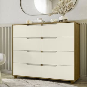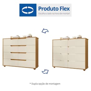 A Cômoda Doble é moderna e funcional. Dispõe de 8 gavetas para manter suas roupas e objetos pessoais mais organizados. Possui reforço estrutural e os puxadores são em formato cava. Seu design garantirá mais beleza ao seu ambiente. Acabamento da Gaveta: Pintura UV Altura dos Pés: 5 cm Ambiente Principal: Quarto Complexidade da Montagem: Alta: deve ser montado por um montador especializado Cor: Carvalho Grife/Off White Cor do Produto: Carvalho Grife/Off White Cor Flex: Carvalho Grife/Off White Cor Interna: Carvalho Grife Escala de Brilho: Fosco Escala de Brilho da Gaveta: Fosco Gaveta com Chave: Não Itens Inclusos: 1 Cômoda, Kit Ferragens e Manual de Montagem Linha ou Coleção: Albatroz Manual de Montagem e Instalação: https://cdn2.madeiramadeira.com.br/atributo/albatroz-m-veis/898335-esquema-1115-comoda-doble.pdf Material da Gaveta: MDP Material do Fundo: HDF Material dos Pés: ABS Material Principal: MDP Montagem Flex: Vistas são flex com opção de cor na hora da montagem, podendo serem montadas nas cores Carvalho Grife ou Off White. Necessita Montagem: Sim Origem do Produto: Nacional Pés Reguláveis: Não Peso: 60,85 kg Peso Máximo por Gaveta: 5 kg Possui Espelho: Não Possui Nichos: Não Possui Pés: 04 Possui Portas: Não Possui Prateleiras: Não Possui Rodízio: Não Recomendações de Uso, Manutenção e Limpeza: Limpar com flanela ou pano macio seco, não utilizar produtos abrasivos, desengordurantes, álcool ou solvente. Não expor o produto diretamente à luz solar e à umidade. Sapatas Niveladoras: Não Sistema de Montagem: Parafusos, Cavilhas e Minifix Suporta Até (kg): 50 kg Tamanho: Tipo de Corrediça da Gaveta: Metálica Simples Tipo de Puxador da Gaveta: Embutido