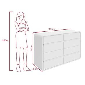 Atributos do ProdutoMarca: Móveis LopasModelo: Easy LikeCor: BrancoDimensões: 152 cm (largura) x 48 cm (profundidade) x 96 cm (altura)Peso: 77 kgMaterial do Corpo: MDF/MDPQuantidade de Gavetas: 08Corrediças: Metálicas TelescópicasPortas: NãoRequer Montagem: SimInclui Manual de Montagem: SimDetalhes e Benefícios